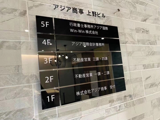 株式会社アジア商事,成立于2015年1月,公司现在拥有自己的自社大楼,地点位于御徒町和湯島徒步3分钟;在上野中心位置松坂屋的斜对面。徒步10分钟之内有上野広小路,上野御徒町、上野,秋葉原等多个车站,通勤上班,接待客户都非常方便。从业人员25名,年龄在30-40岁居多,公司主要经营不动产买卖,租赁,管理以及签证咨询,税务办理等业务。营业额比例:賃貸10%,売買90%;平均年收550万;公司现有日本人宅建士,行政书士,税理士在籍,主要面向在日华人及国内投资客户,现扩大规模,招聘店长候补,正社员数名,提供就职签证。公司福利丰厚,定期奖金➕社员旅行。